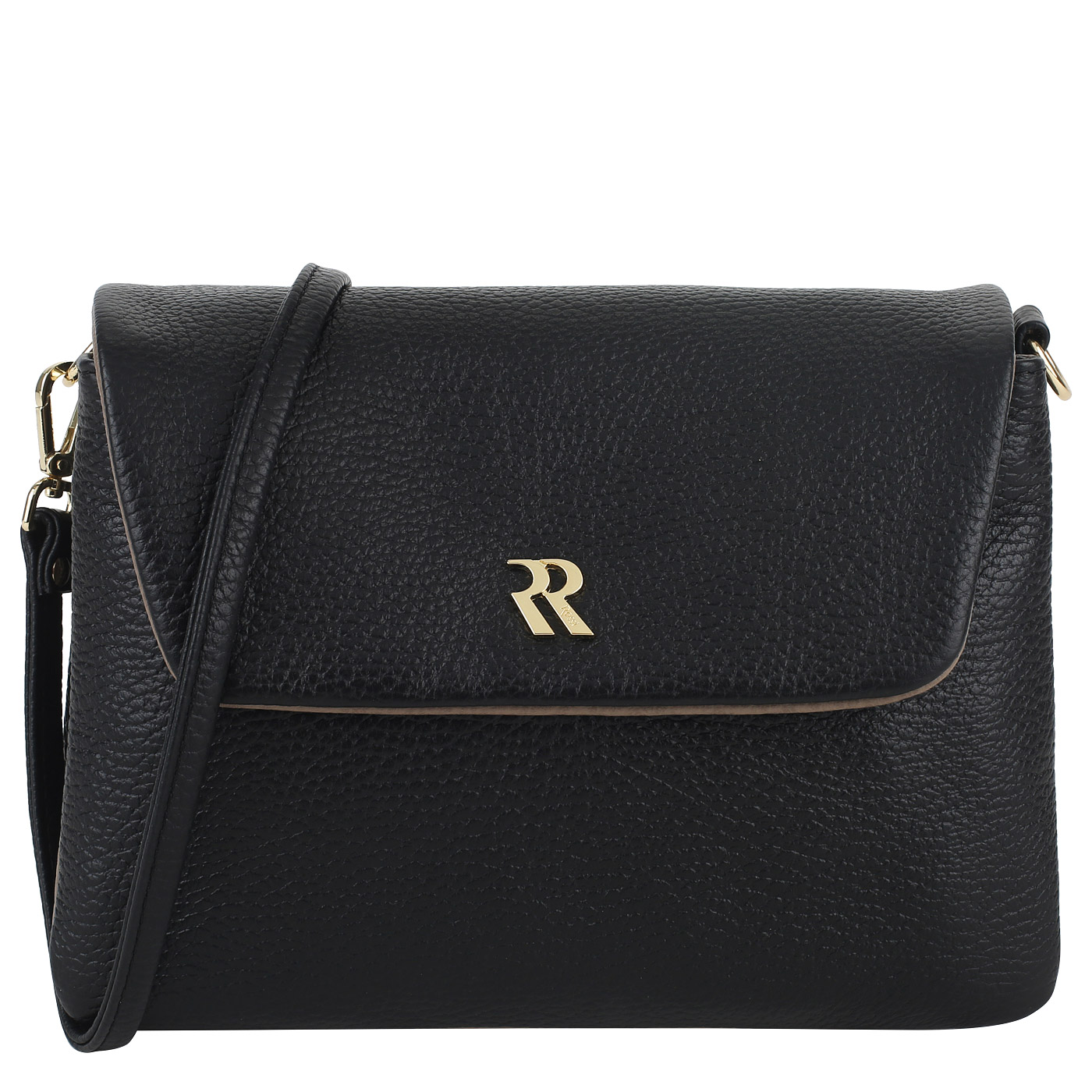 Небольшая мягкая сумочка для повседневного ношения, невзирая на габариты, достаточно вместительна. Носить ее можно любым удобным способом — для этого в комплекте идут съемная ручка и съемный плечевой ремешок изменяемой длины. Сумочка изготовлена из черной натуральной кожи и закрывается с помощью откидного клапана. Внутри два открытых боковых отдела и центральный отдел с застежкой-молнией.